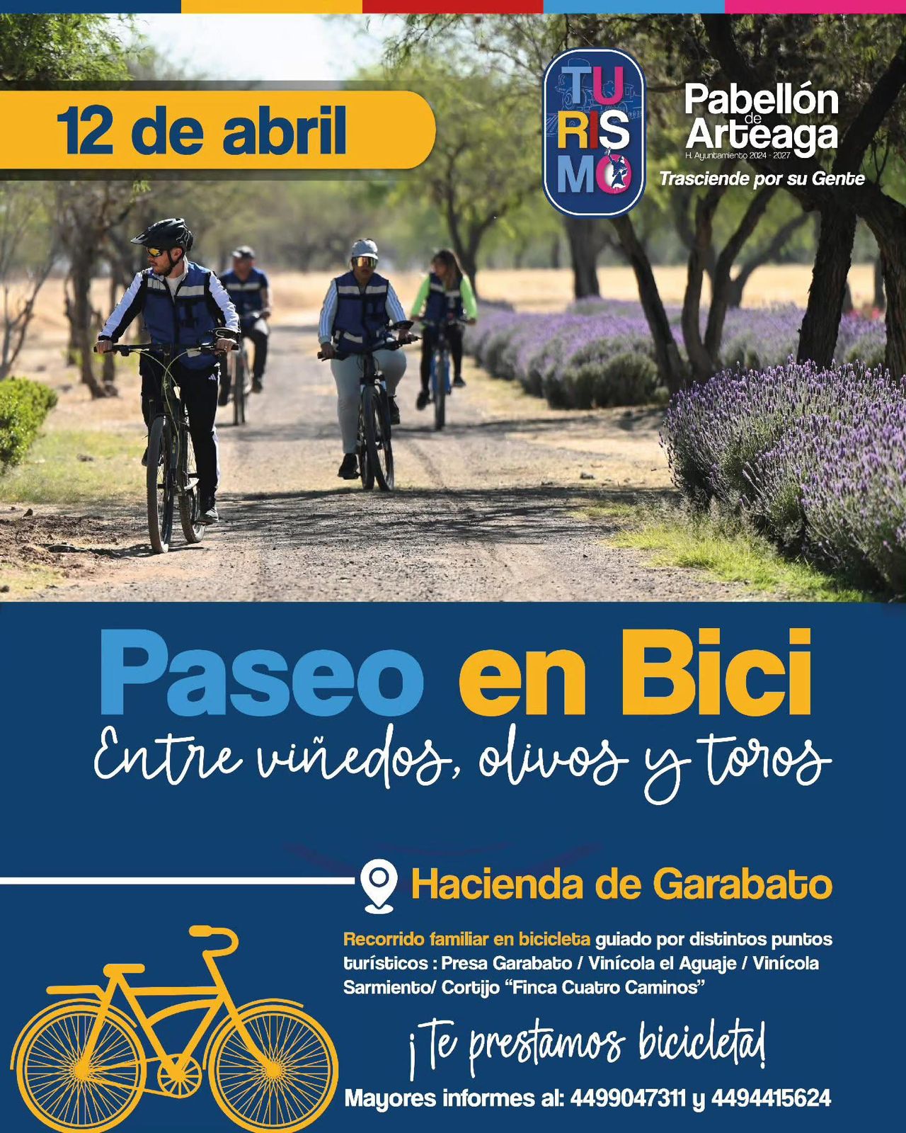 Este 12 de abril, te invitamos a disfrutar del Paseo en Bici 🚲 entre viñedos, olivos y hermosos paisajes, en la Hacienda de Garabato.